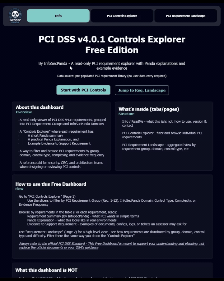 Not affiliated with any organization or NIST, PCI SSC. Explorers include framework navigation plus InfoSecPanda’s own interpretive notes.