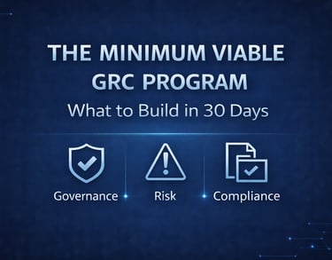 A “Minimum Viable GRC Program” is not a shortcut. It’s discipline. It’s the smallest version of a program that runs repeatedly, survives busy weeks, and doesn’t depend on heroics. If you can build that in 30 days, everything else becomes a controlled expansion instead of an endless rebuild.